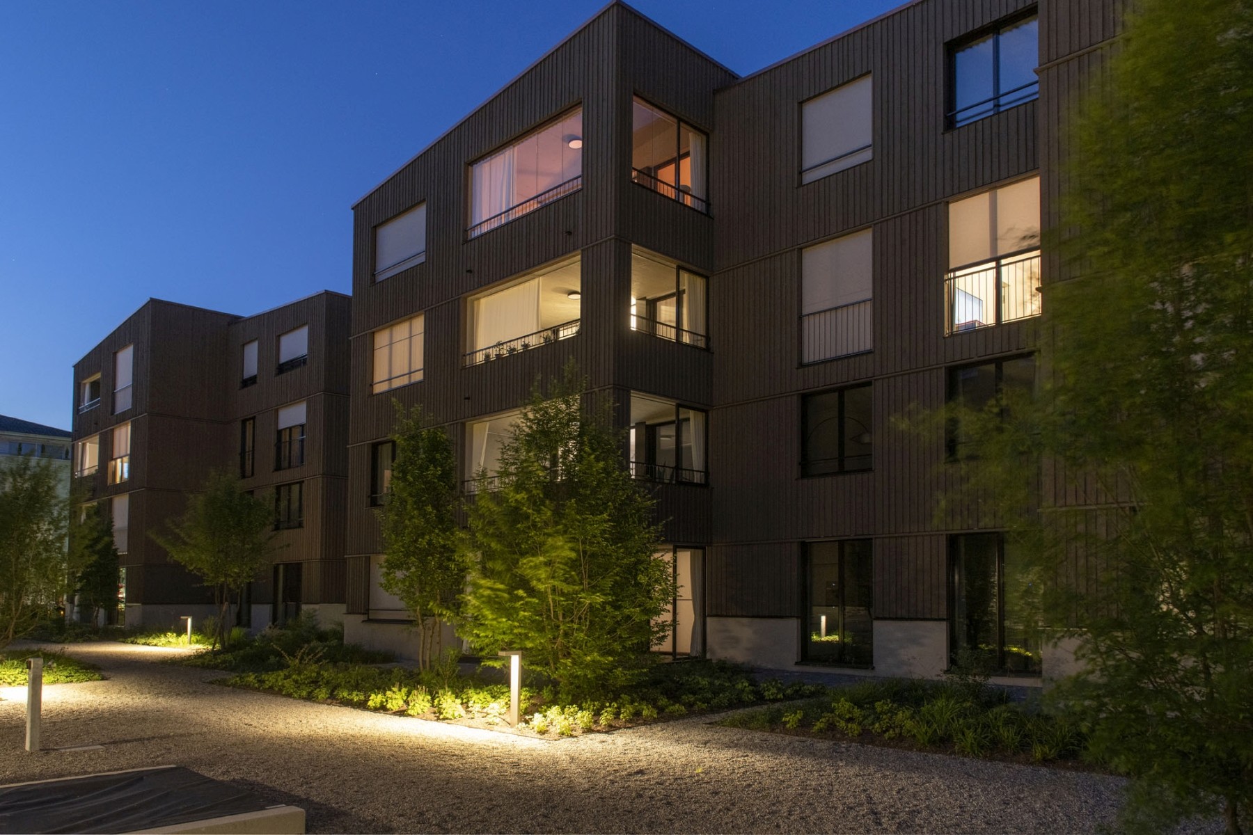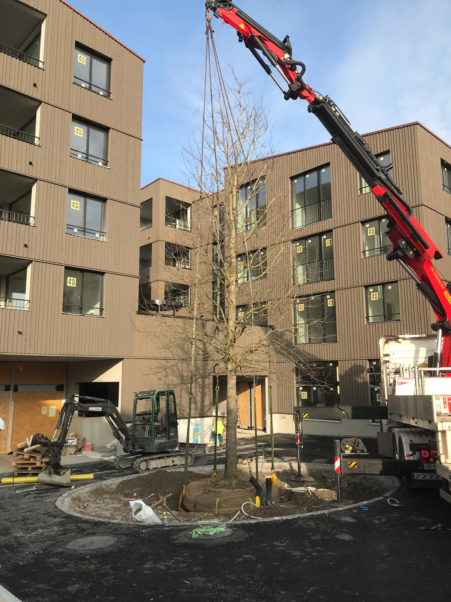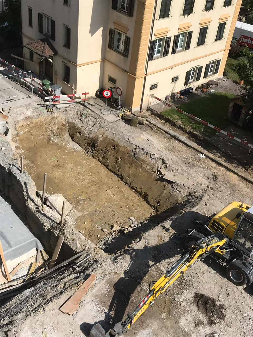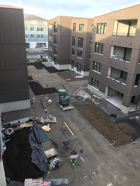 Im Aussenraum wird eine stimmungsvolle Atmosphäre mit hoher Aufenthaltsqualität und hohem Identifikationspotenzial geschaffen. Der Gartenhof ist als halböffentlicher durch die Bebauung lärmgeschützter Aussenraum und Begegnungsraum konzipiert. Die privaten Aussenräume der Wohnungen weisen eine hohe Privatsphäre auf.