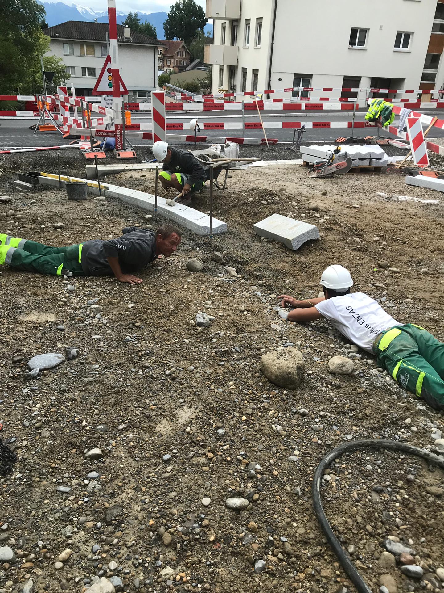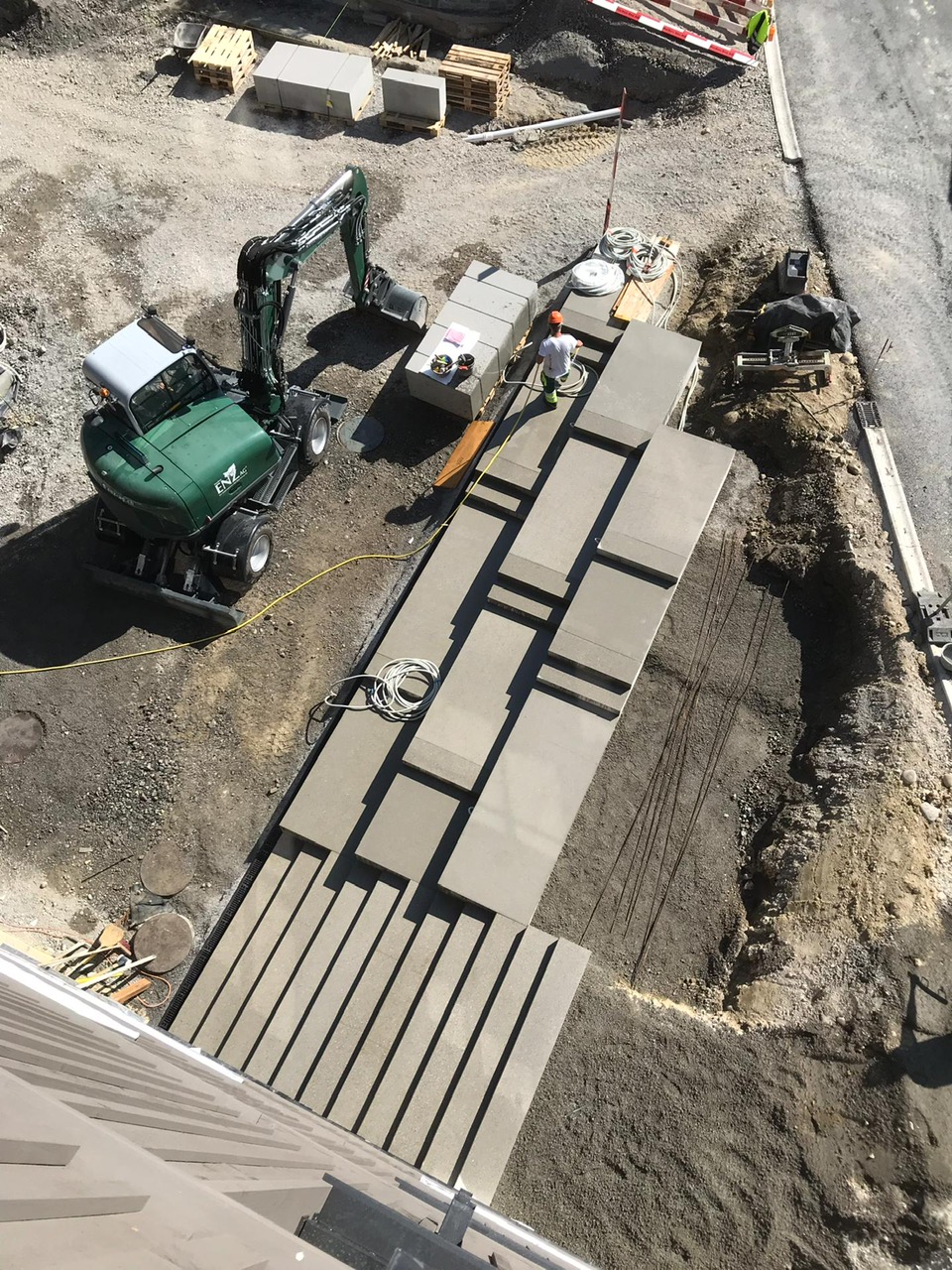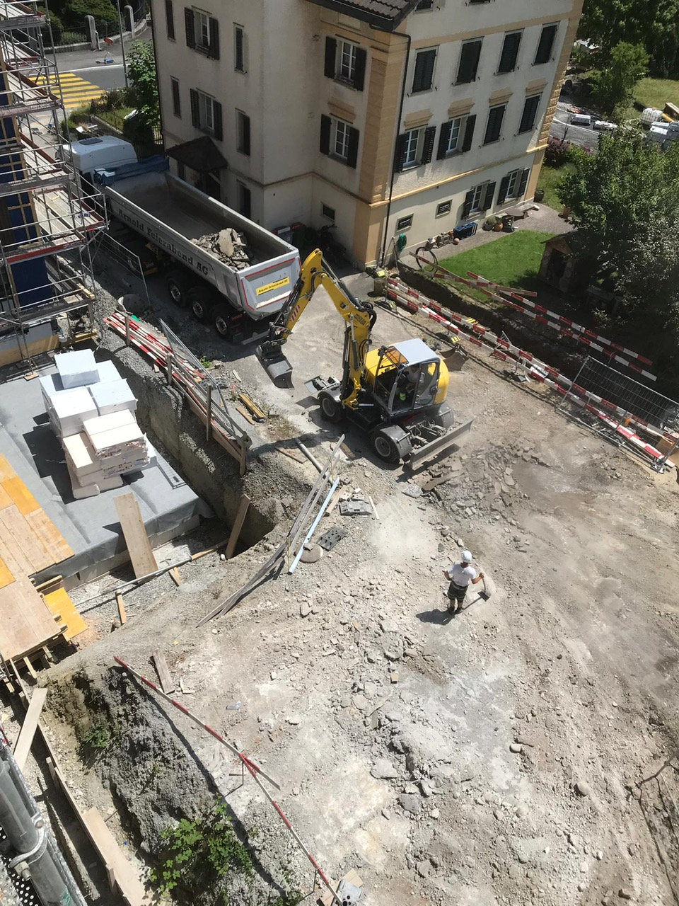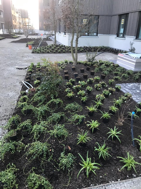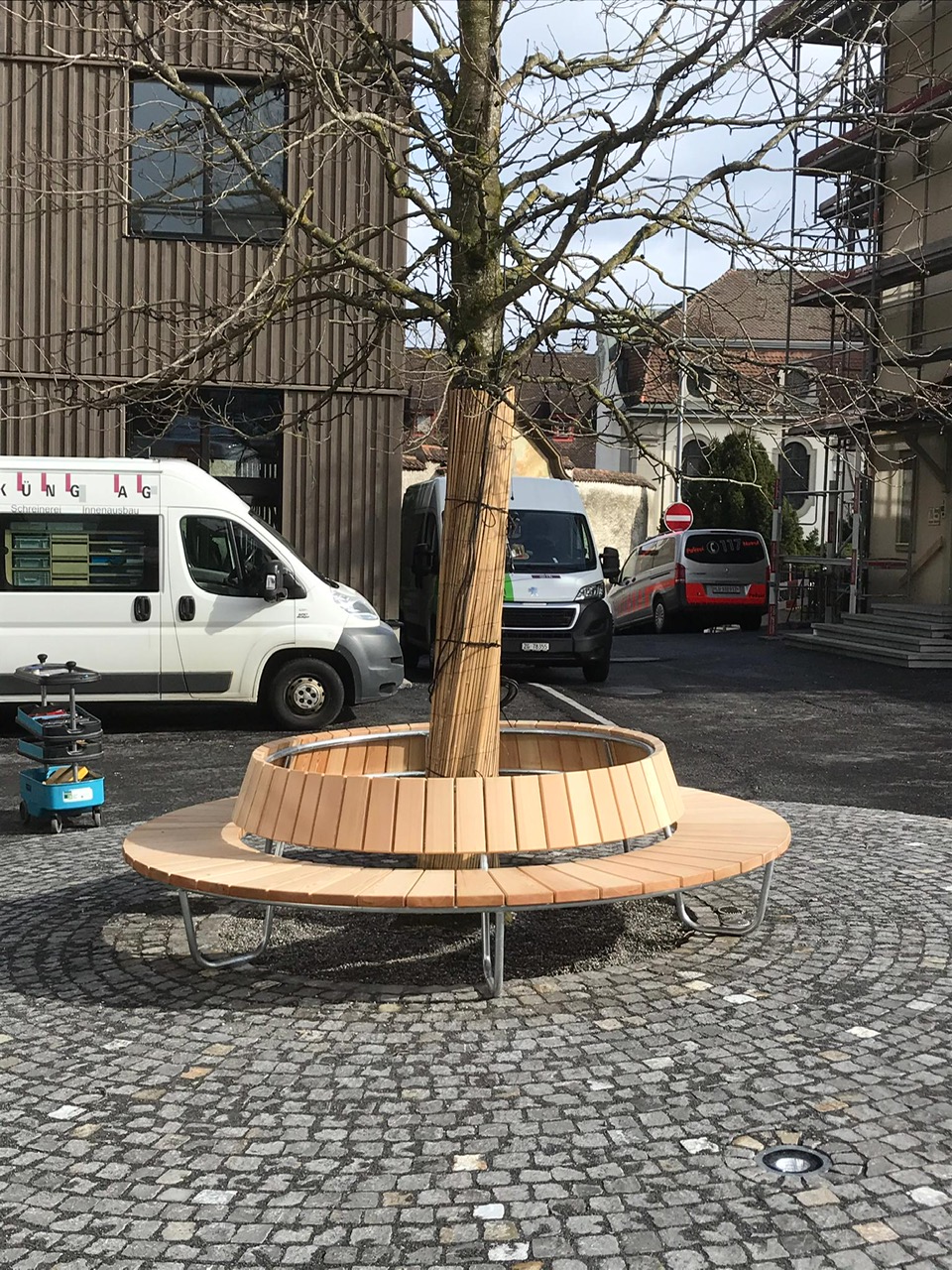 Im Aussenraum wird eine stimmungsvolle Atmosphäre mit hoher Aufenthaltsqualität und hohem Identifikationspotenzial geschaffen. Der Gartenhof ist als halböffentlicher durch die Bebauung lärmgeschützter Aussenraum und Begegnungsraum konzipiert. Die privaten Aussenräume der Wohnungen weisen eine hohe Privatsphäre auf.