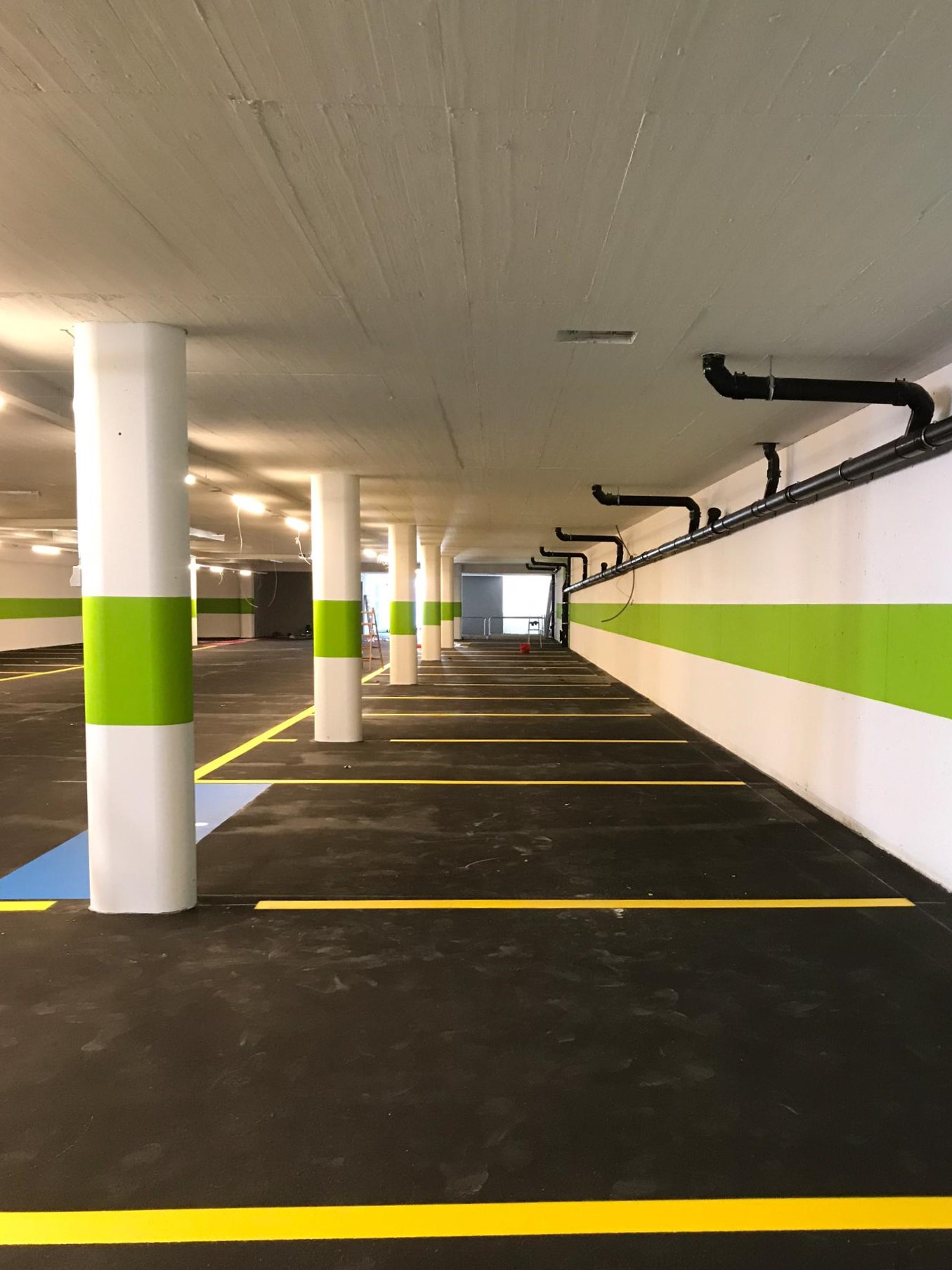 Das Parkgeschoss mit grosszügig konzipierten Parkplätzen und mit ebenerdigem Zugang zu den Verkaufsflächen sorgt für einen angenehmen Einkauf.