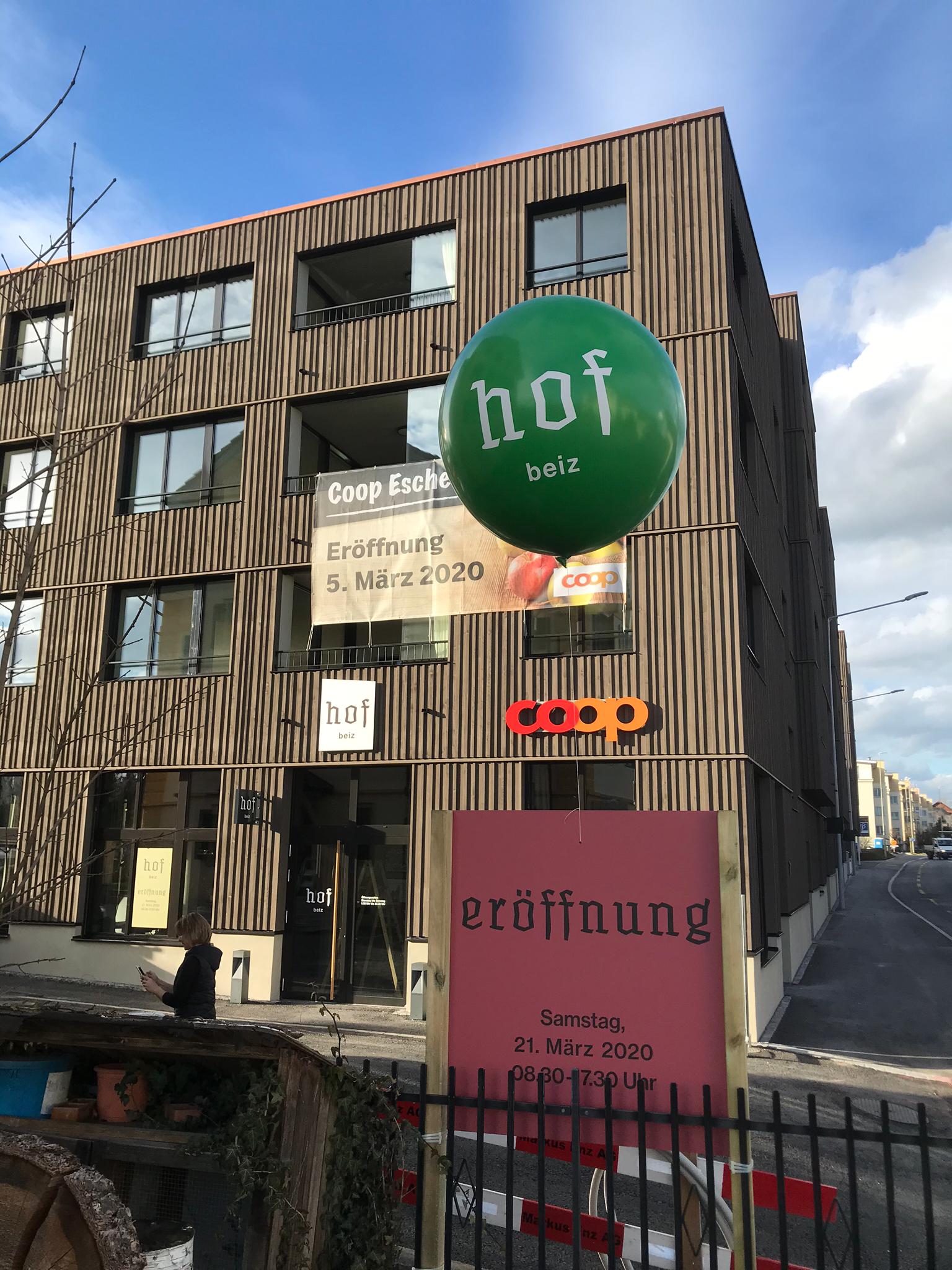 Mit Coop kommt ein grosser Detailhändler nach Eschenbach. Auf über 1000 m2 eröffnet Coop am 5. März 2020 einen attraktiven Supermarkt mit einer grossen Früchte- und Gemüseabteilung. Frische Backwaren, Weine und Getränke sowie ein grosses Angebot an Non-Food-Produkten ergänzen das Sortiment.
