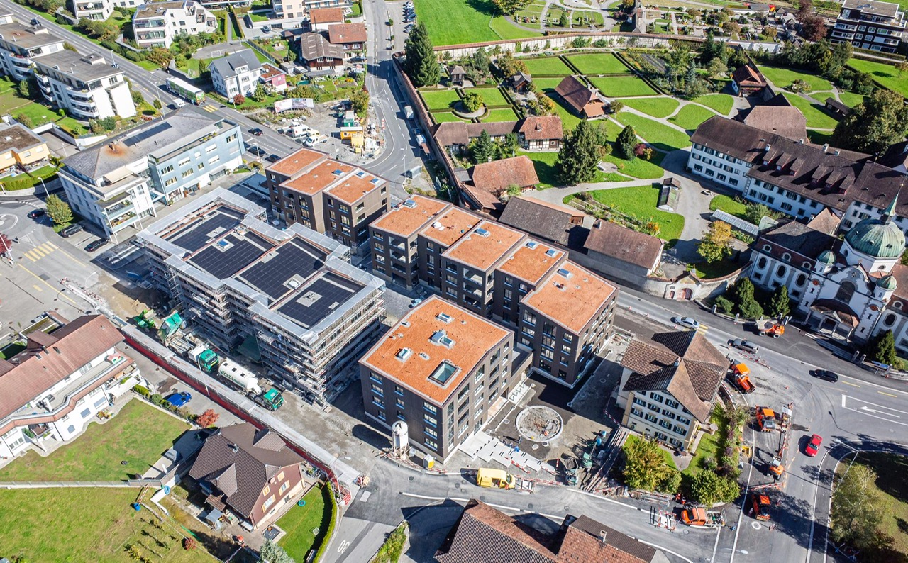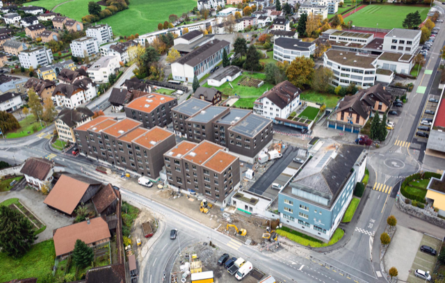 Im Oberhof entstehen ein Gebäude mit 15 Mietwohnungen und drei Gebäude mit total 34 Eigentumswohnungen.