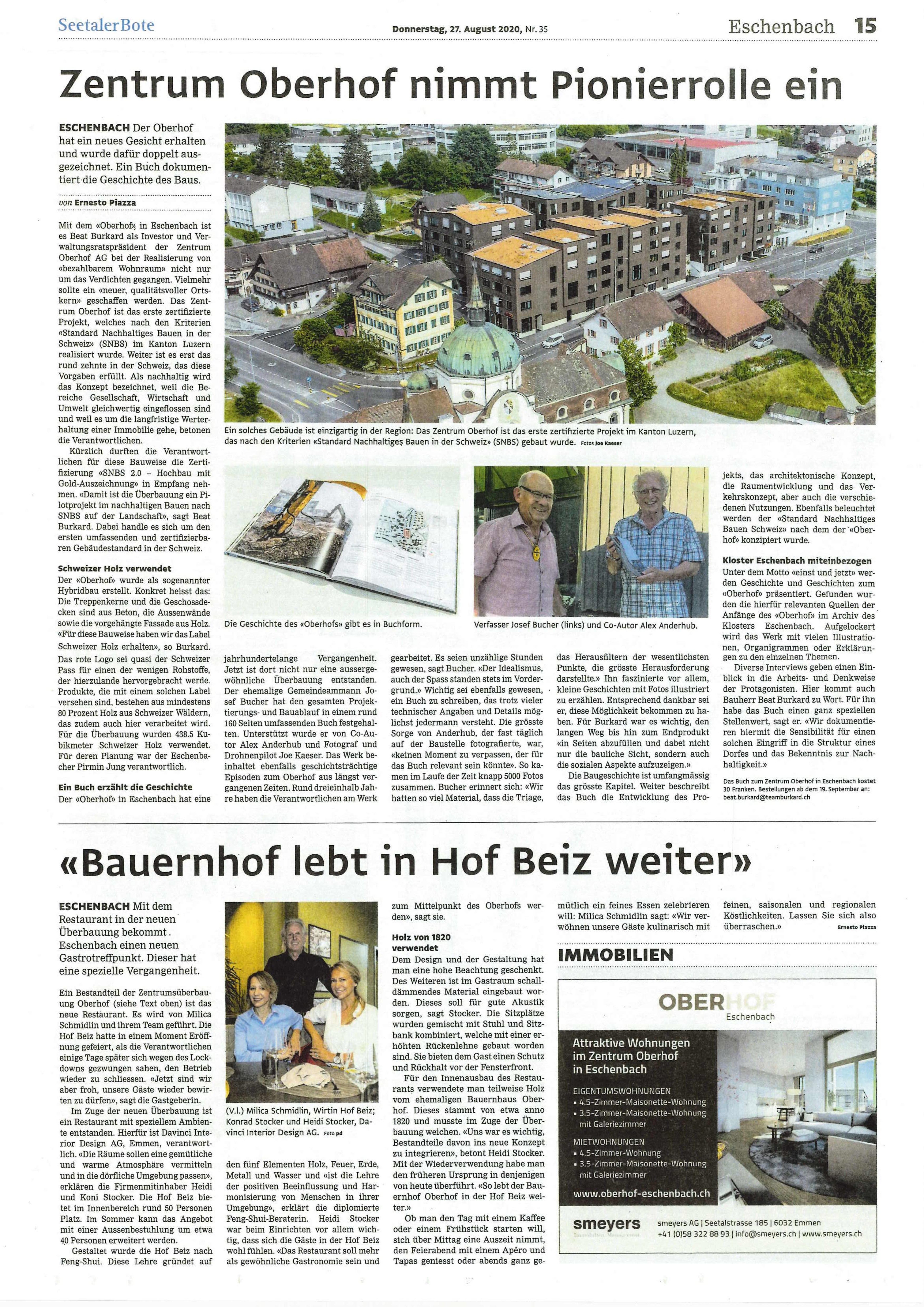Am 1. Mai 2020 öffnet in der Überbauung Oberhof die Praxisgemeinschaft Oberhof ihre Türen. Der im Seetal bekannte Hausarzt Dr. med. Cornel Raess aus Hitzkirch ist der Initiant dieses Projektes. Nach der im 2017 neu gebauten Praxis in Hitzkirch, des im Bau befindlichen Medizinischen Zentrums in Hochdorf und der in Planung befindlichen Praxis in Hildisrieden ist Eschenbach bereits seine vierte Praxisgemeinschaft, die er eröffnen wird. Die letzten drei werden alle im 2020 fertiggestellt.