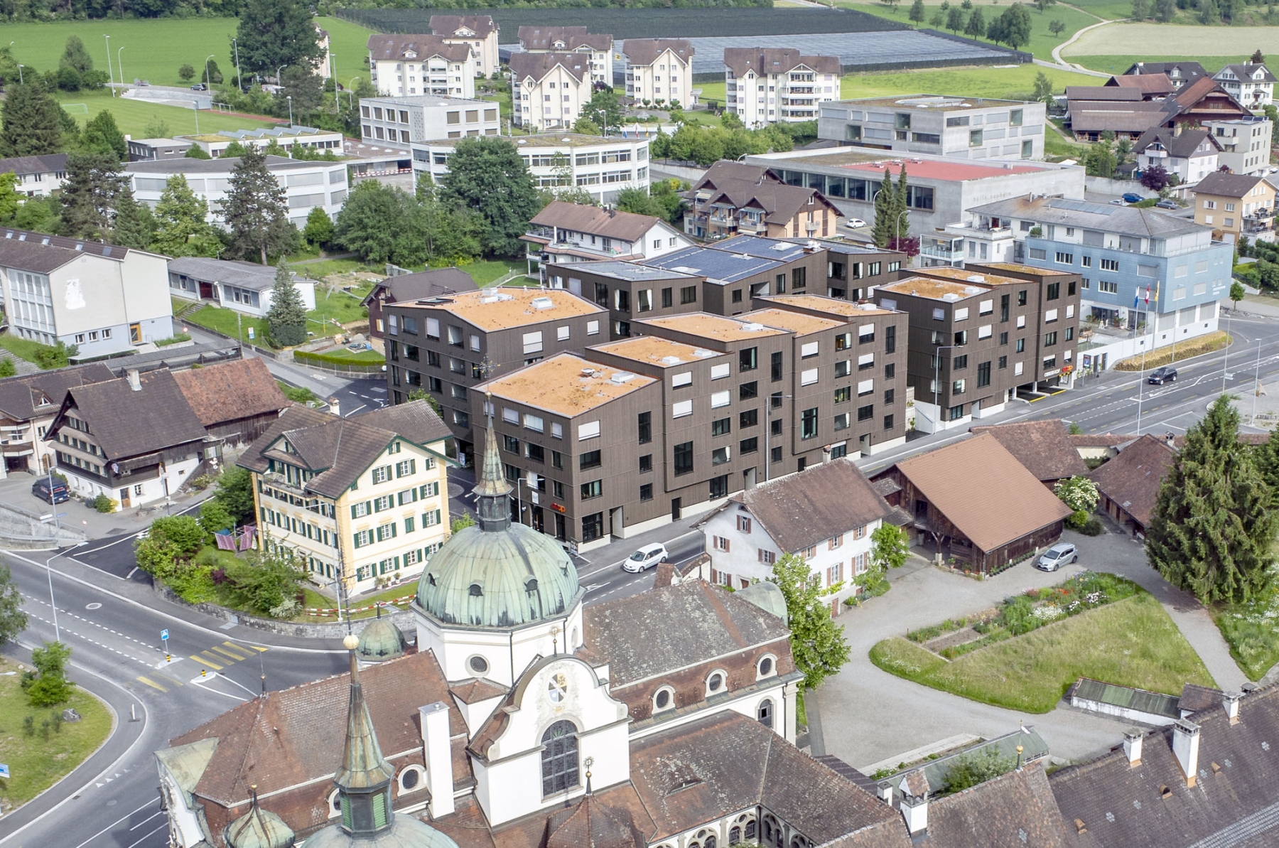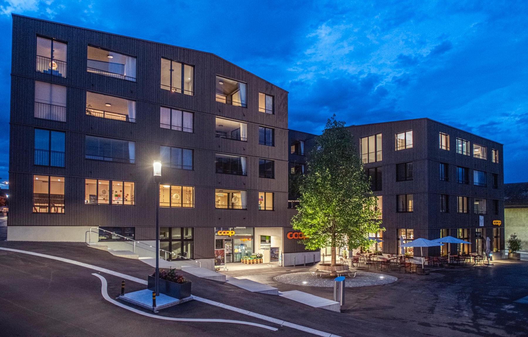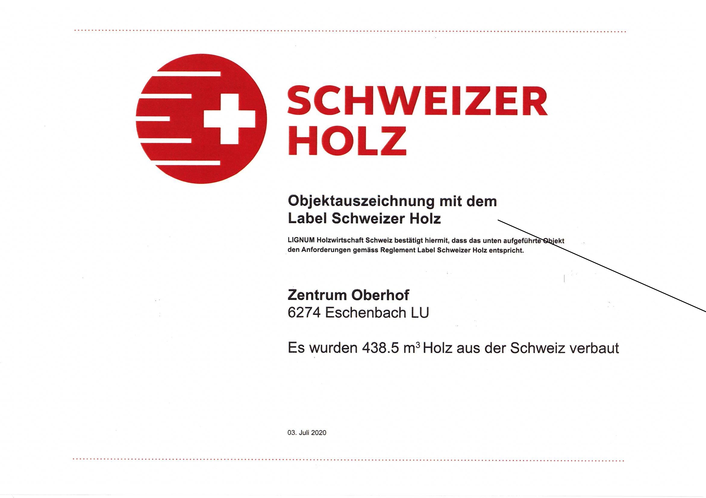 Der Oberhof wurde als Hybridbau (Aussenwände und vorgehängte Fassade aus Holz) erstellt und dafür haben wir das Label Schweizer Holz erhalten.