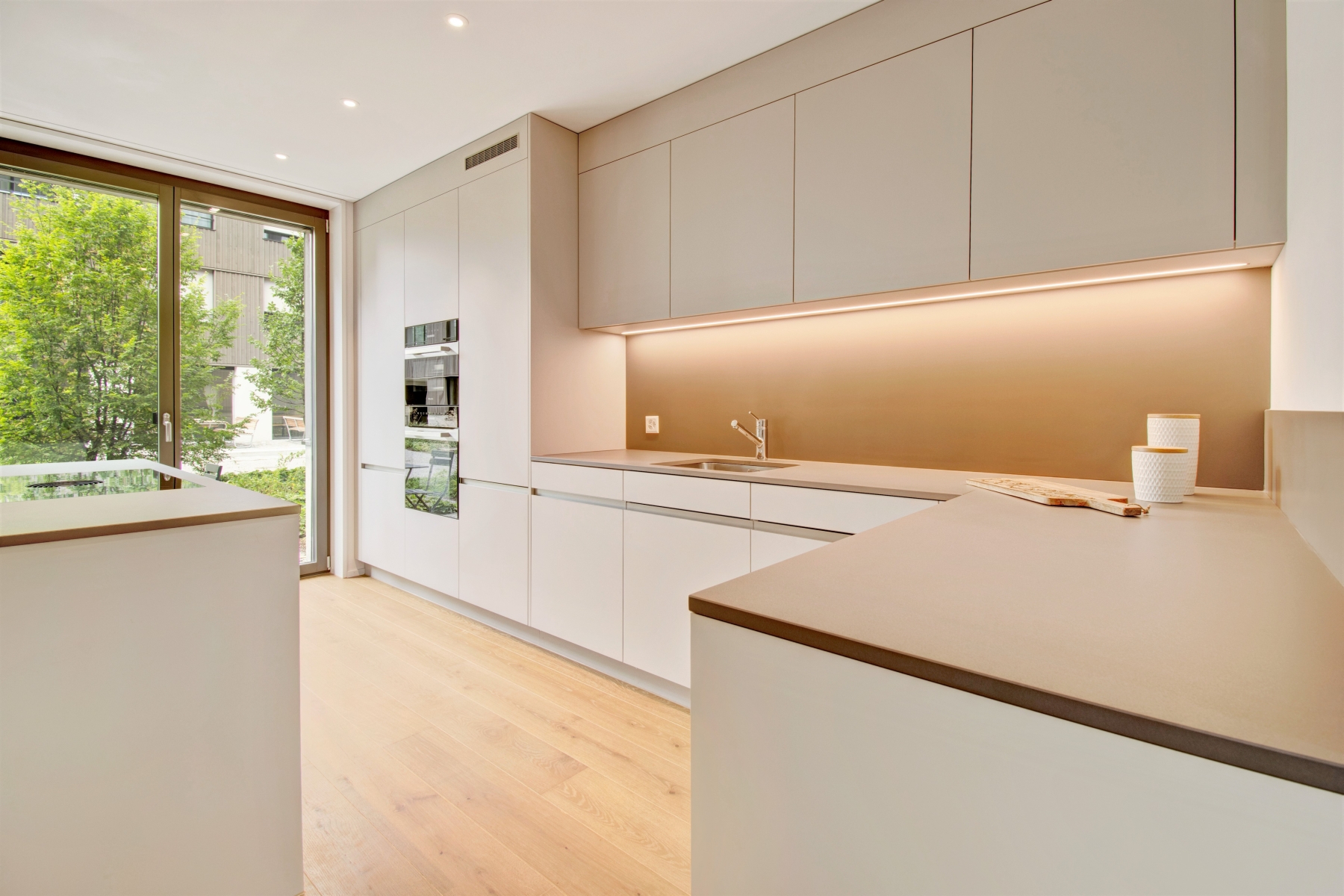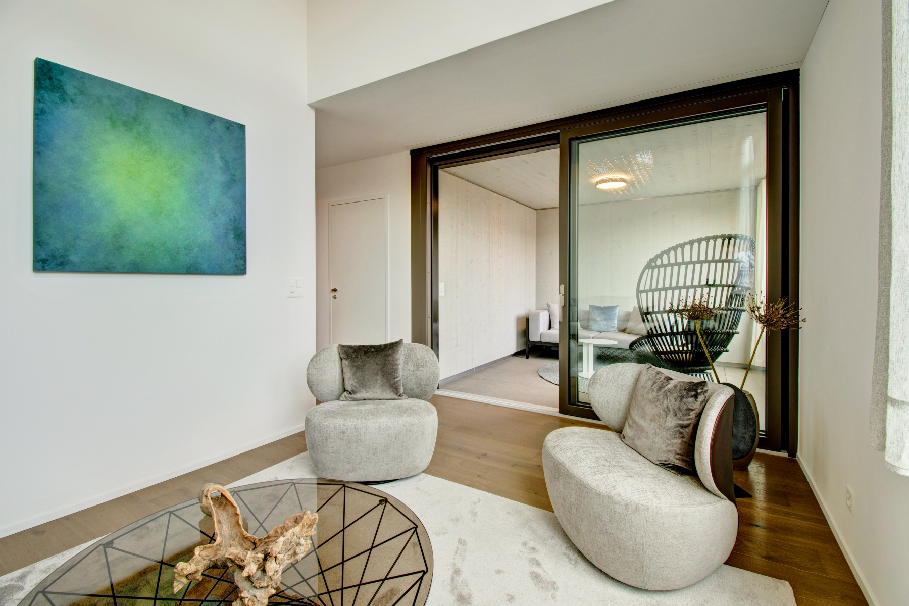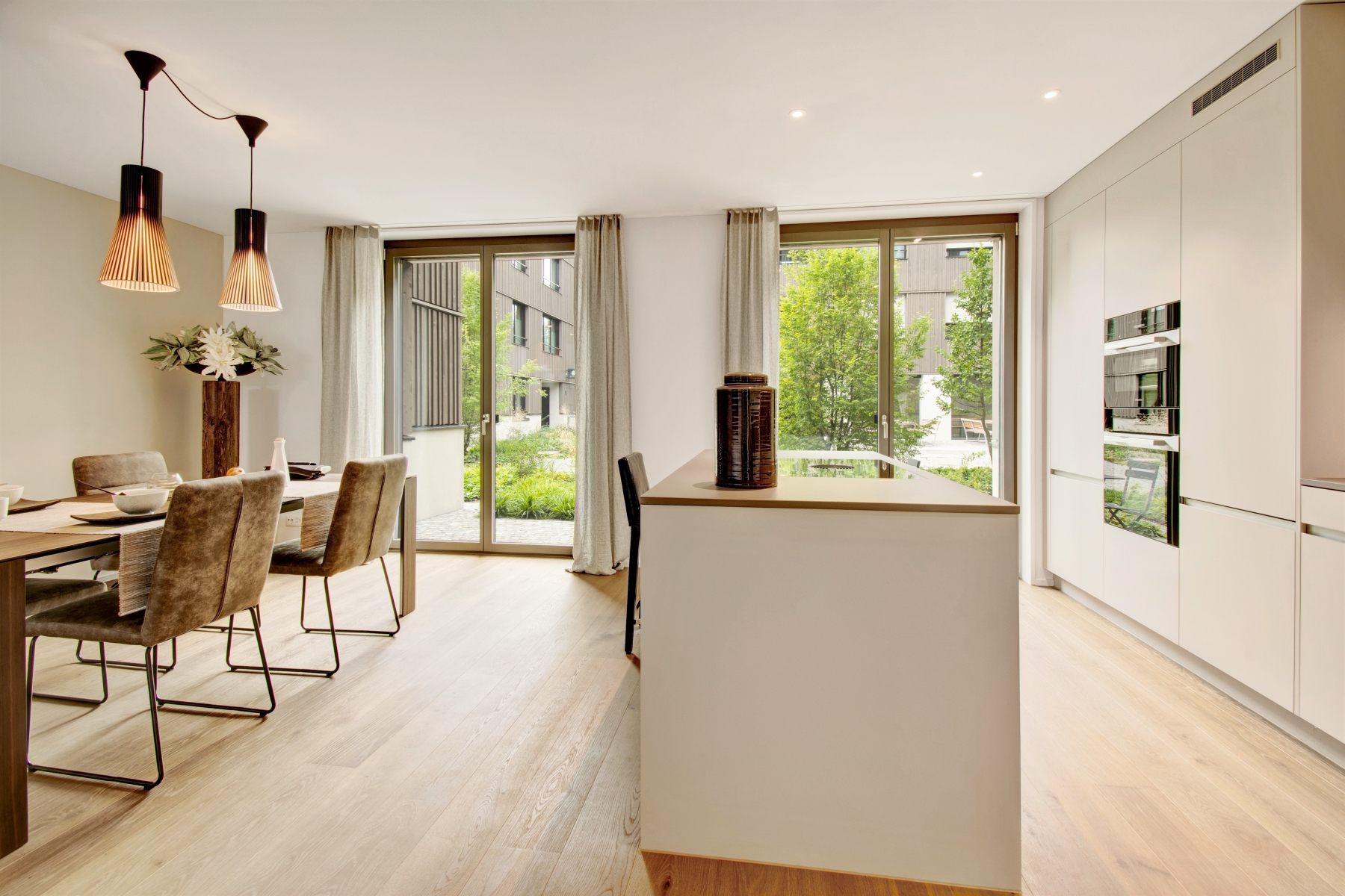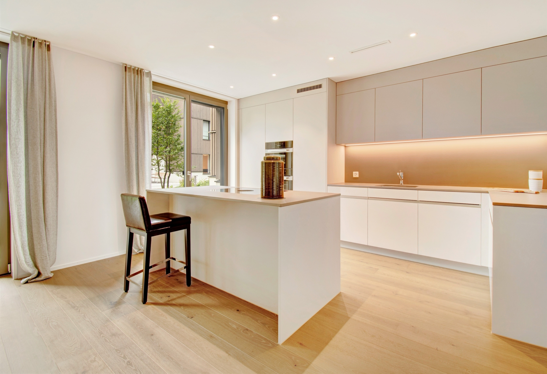 Die Mietwohnungen beeindrucken mit einem hohen Ausbaustandard – so verfügt jede Wohnung über einen eigenen Waschturm. Die Einrichtungen und Materialien sind zeitlos und elegant. In allen Räumlichkeiten, ausgenommen in den Nassräumen, wird ein hochwertiger Eichenparkett verlegt. Alle Wohnungen ab 3½ Zimmern verfügen zudem über zwei Nassräume. Die bodenebenen Duschen sind jeweils mit einer Echtglastrennwand ausgestattet.