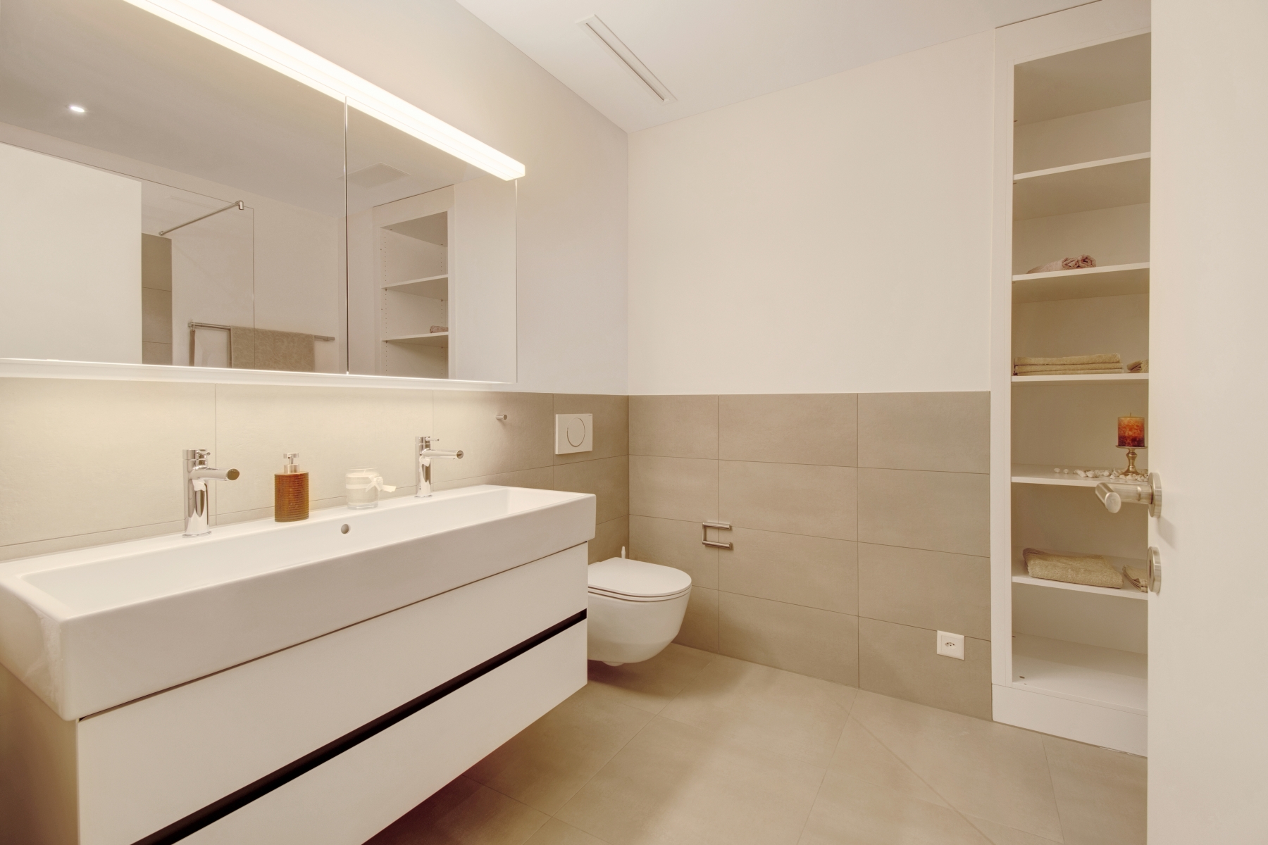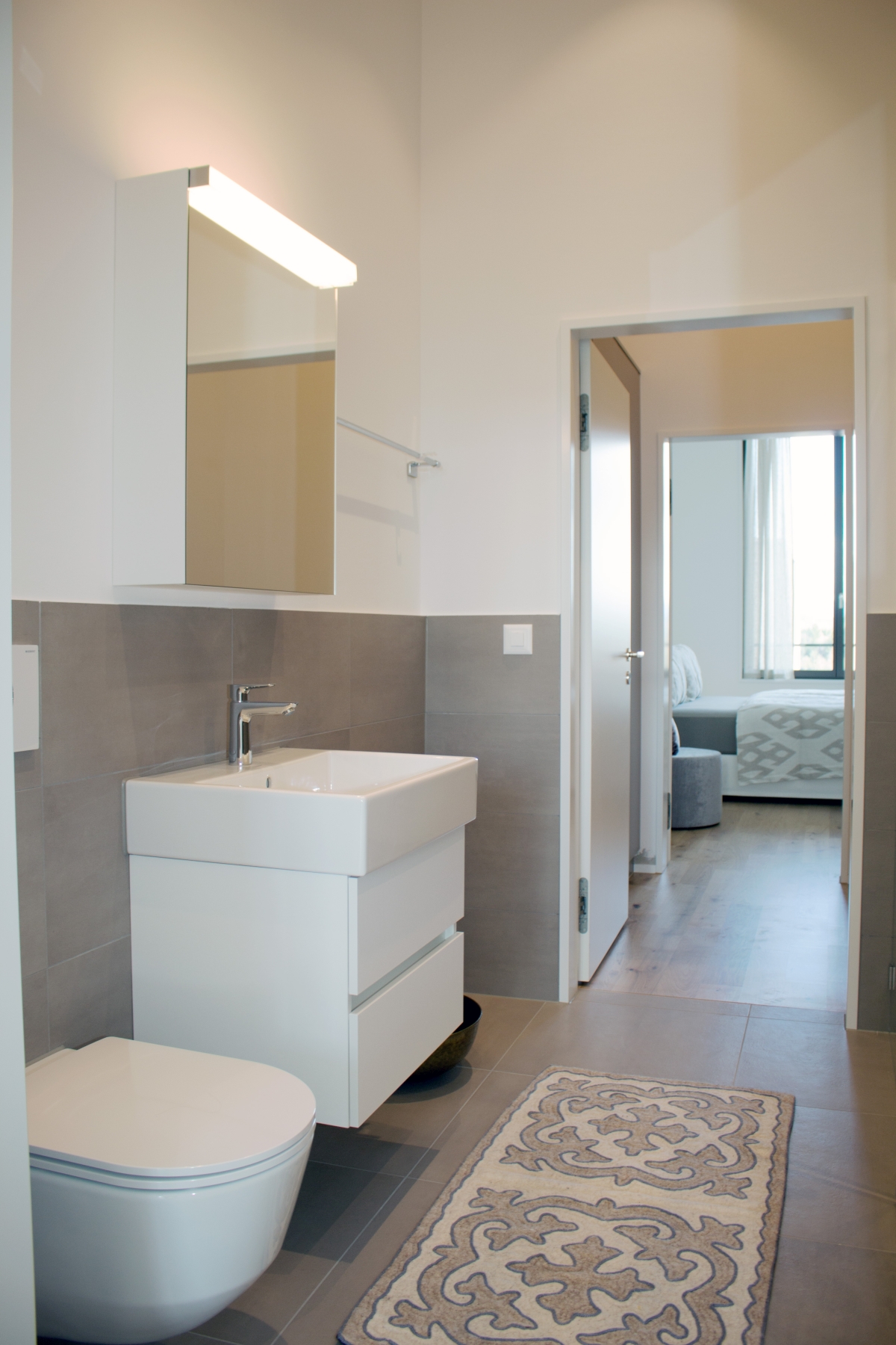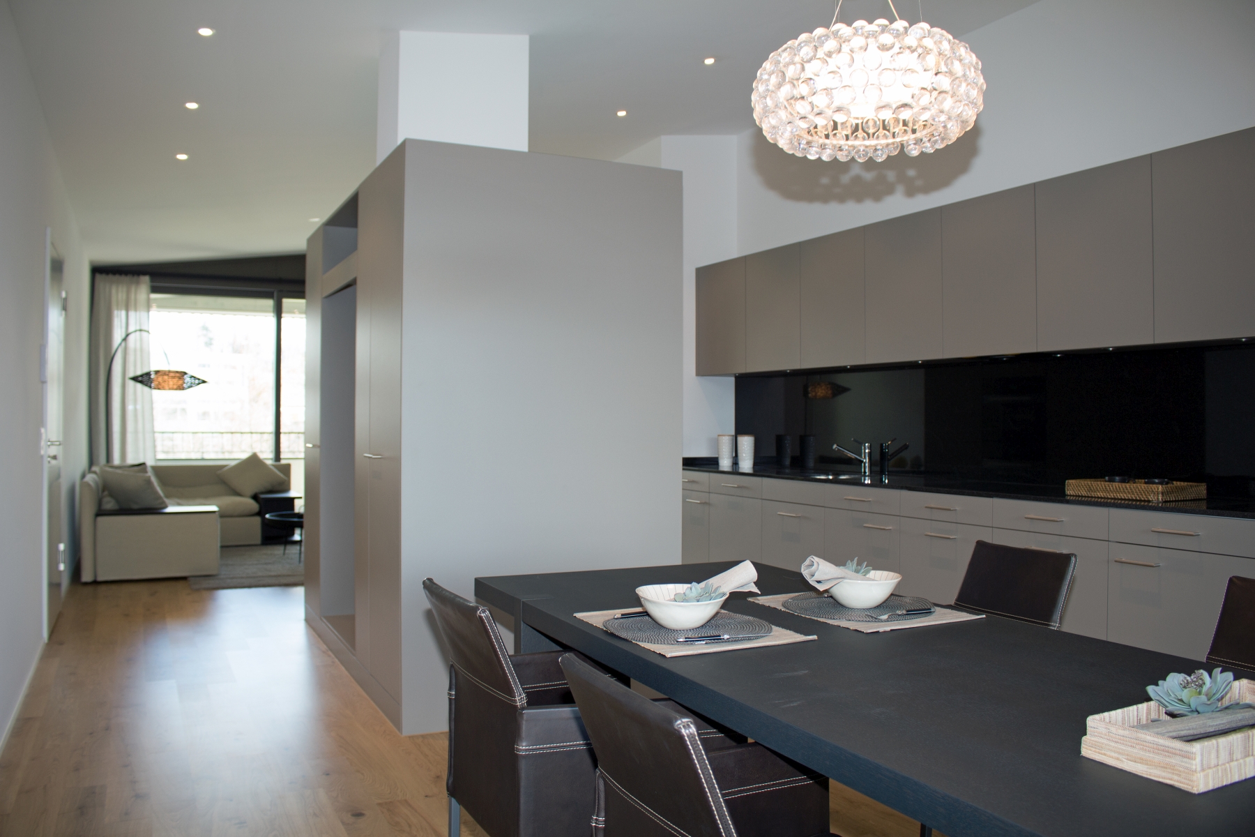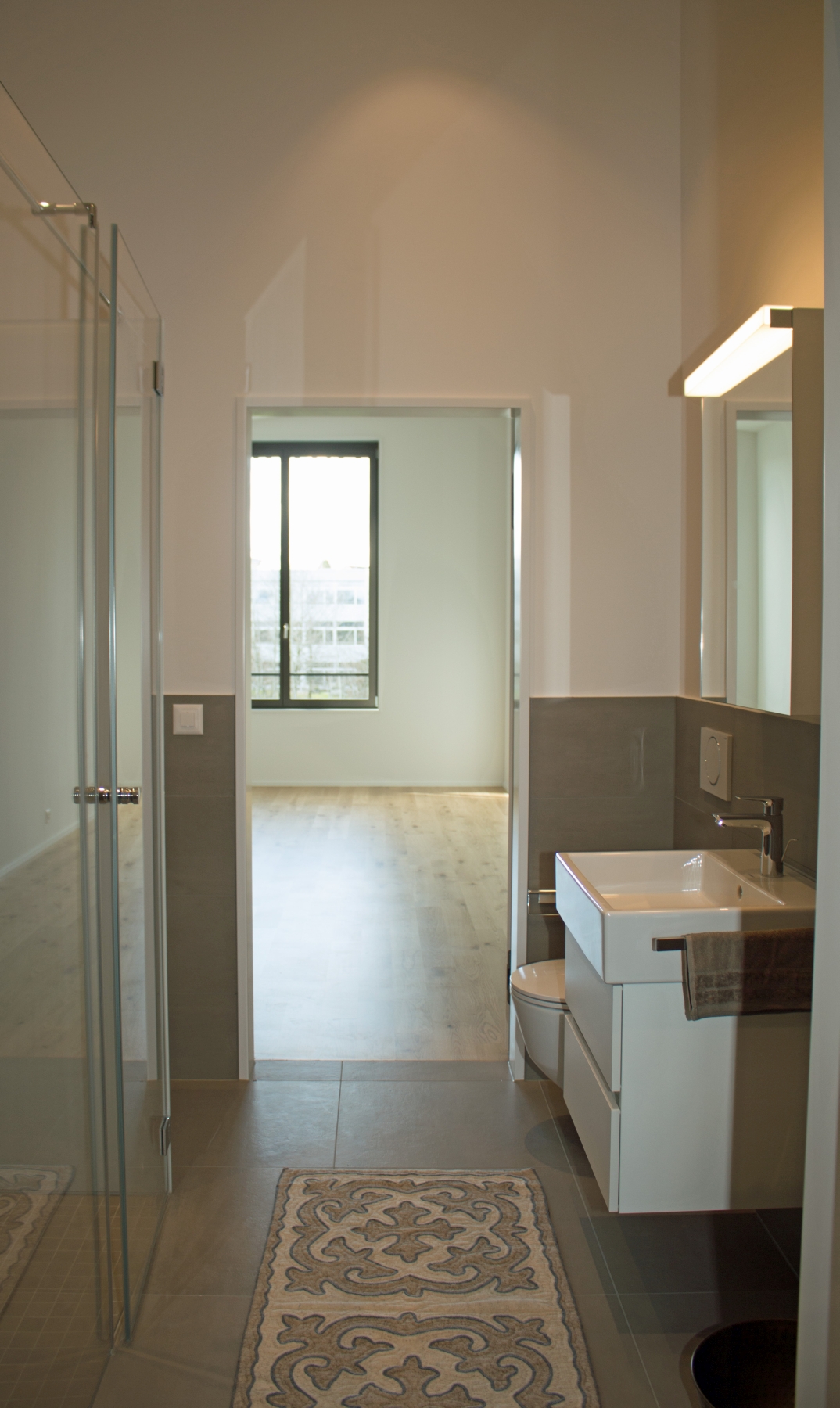 Die Mietwohnungen beeindrucken mit einem hohen Ausbaustandard – so verfügt jede Wohnung über einen eigenen Waschturm. Die Einrichtungen und Materialien sind zeitlos und elegant. In allen Räumlichkeiten, ausgenommen in den Nassräumen, wird ein hochwertiger Eichenparkett verlegt. Alle Wohnungen ab 3½ Zimmern verfügen zudem über zwei Nassräume. Die bodenebenen Duschen sind jeweils mit einer Echtglastrennwand ausgestattet.