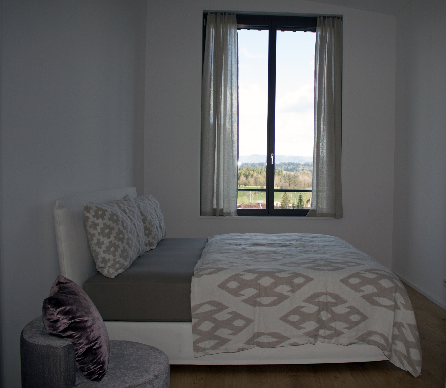 Jede Wohnung verfügt über eine lauschige Loggia, sämtliche Wohnungen über einen durchgehenden Wohn- und Essraum von Ost nach West mit je einer Loggia. Die Eckwohnungen haben einen zweiseitigen Aussenbezug.
